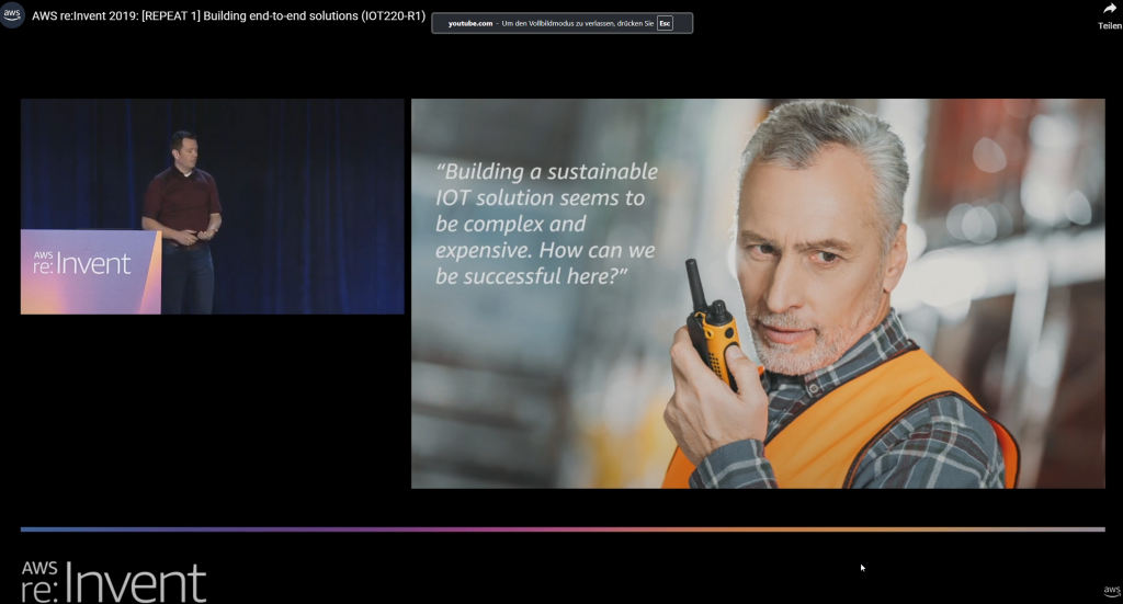 I had the please to talk at AWS re:invent 2019 about end to end IOT solutions. The session was recorded,