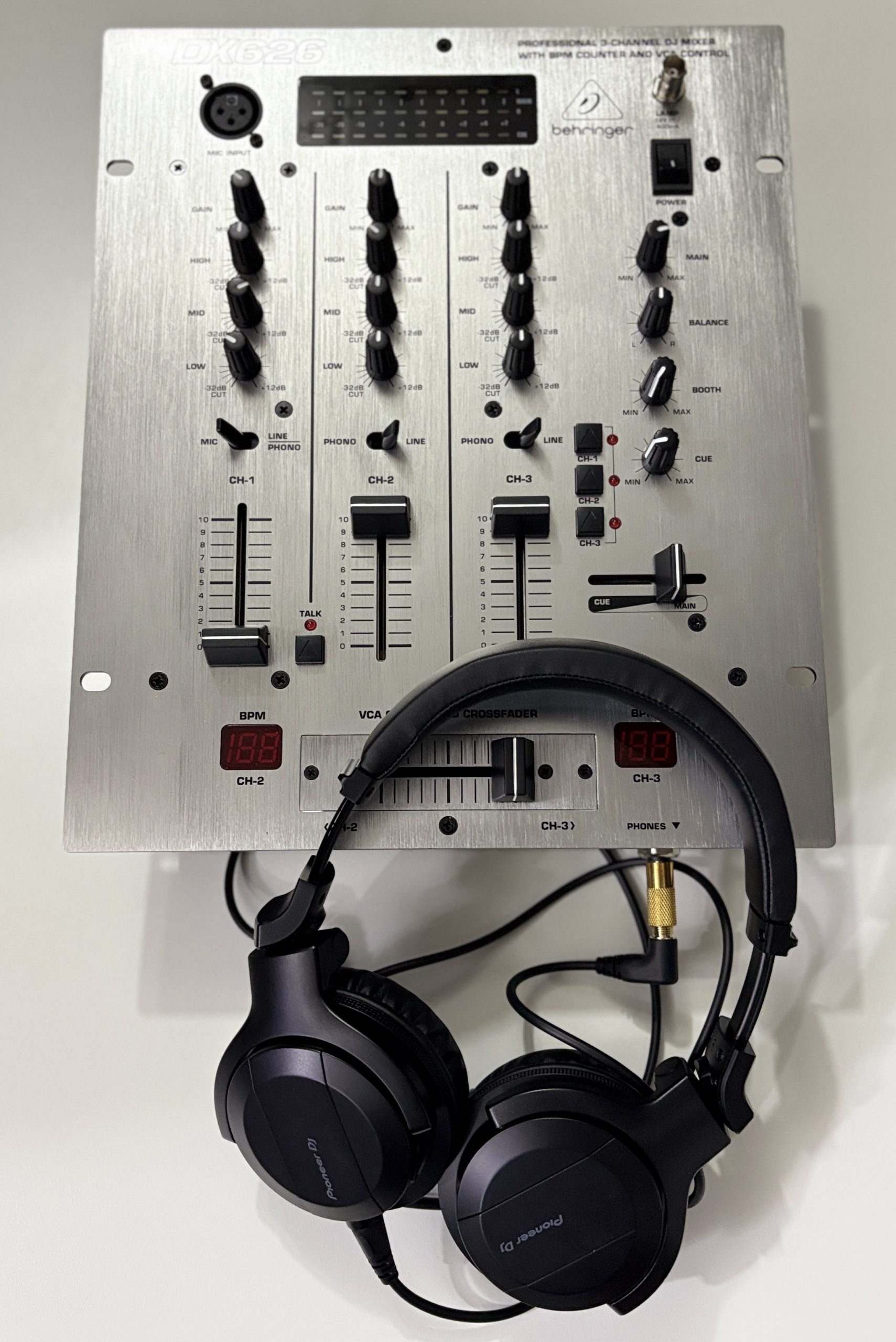 Behringer CX626 3-Channel Mixer (1 Kanal Mikrofon, 2 für Line-In). Inklusive Kabel und Pioneer DJ Kopfhörer.